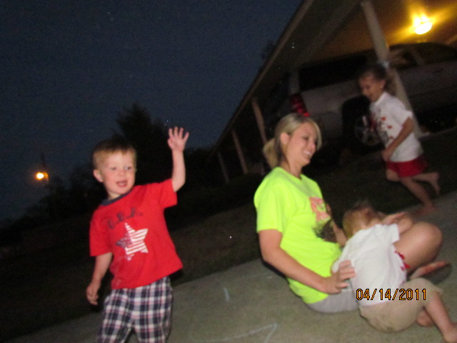 So anyway.... Kyle didn't get home until 9:40 last night. Late huh? So anyway... the kids and I played outside for a while yesterday afternoon and came inside in time to feed everyone supper and wash bottles.... then off to IBC we went. After church, we came home and got baths.... of course as soon as I took the diaper off of Sophie.... she peed!!! All over me... no joke like not even 1 second later. Once everyone got finished with their bath, we got dressed and rocked and then Daddy got home.