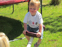Well I came back inside and was folding a load of laundry and I heard Karter screaming and then I was putting the dish towels up and I saw/heard Kyle hurrying to the door. Well Karter's mouth was pouring blood. We both thought it was his tooth at first, but thankfully he only busted his lip. He had walked up to the rope swing and pushed it, well Kyle was holding Sophie & running to move Karter out of the way and was telling Karter to move and he didn't move and Kyle didn't make it to him in time, so the swing came back and the corner knocked his mouth pretty good.
