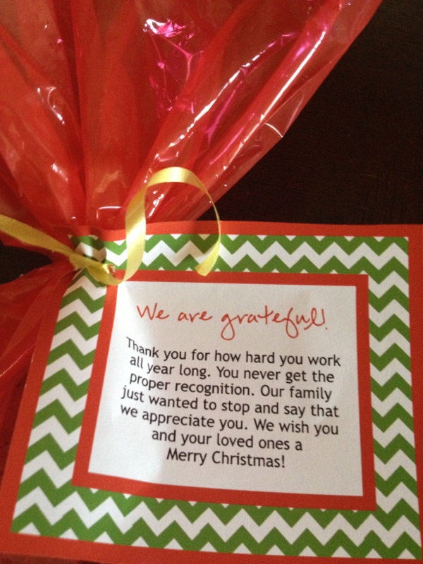 Ohhhh I forgot.... I let Heidi pull todays chain off because I knew what it said and anyway it said to leave some of our cookies for the mailman. So thankful Valerie told us about teh Light Em Up Page.... We put the cookies in a bag and put this cute note on them....