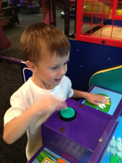 Karter was mad with me because he didn't have 400 tickets to exchange for a snake. All he got was a frog LOL! So he wouldn't take a picture with me and the girls :(.